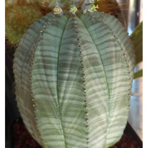 Euphorbia obesa. The "Gingham Golfball". Small, rounded, sometimes elongated, Euphorbia with distinct markings.